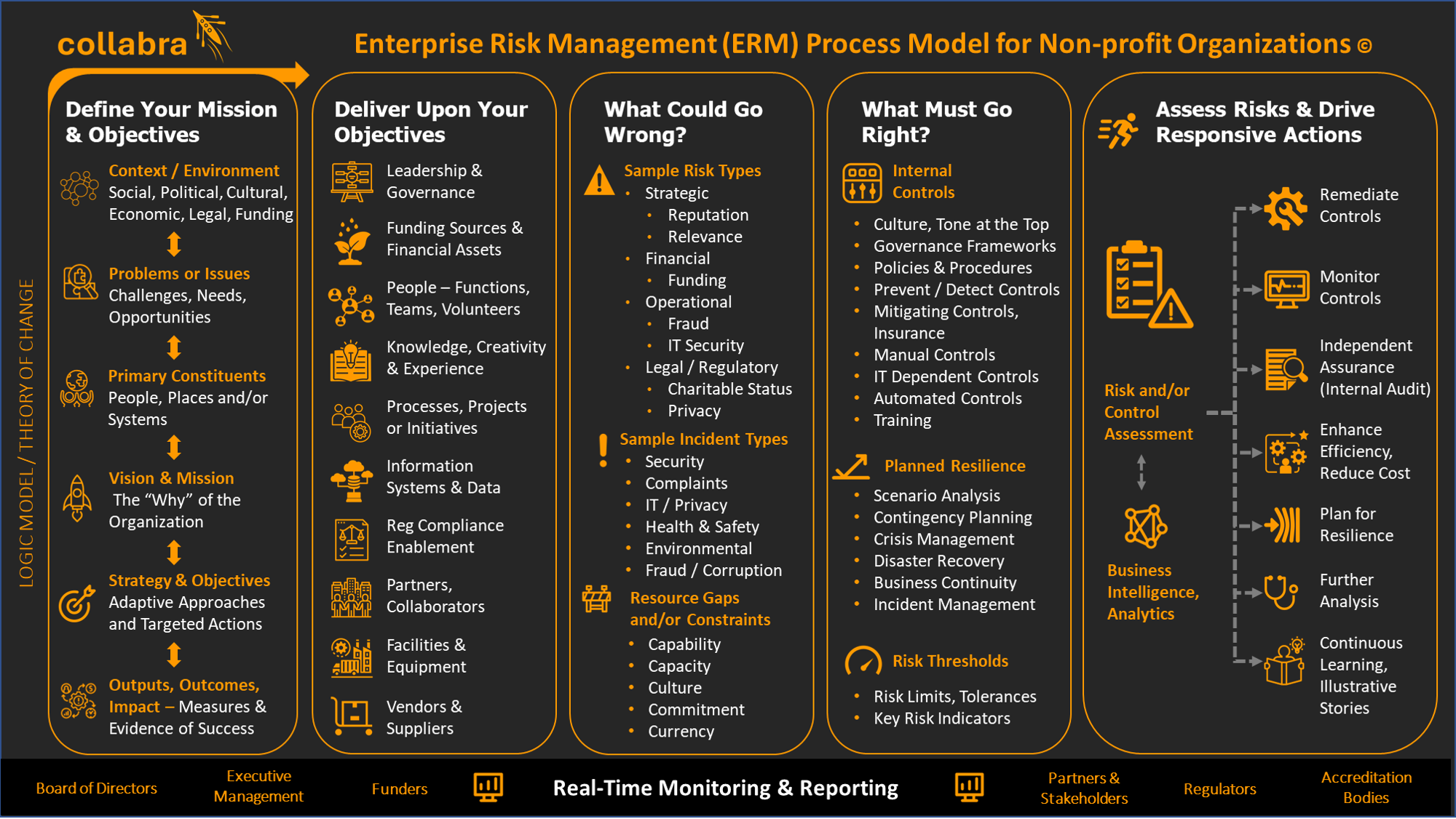 With Collabra, you’ll readily identify and manage the risks that matter most, e.g. those that are truly material to the achievement of your organization’s mission & objectives. And through seamless integration across related applications and processes, you’ll dramatically enhance both efficiency and insight.